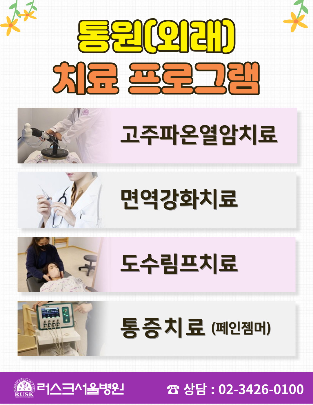 방사선 치료 중에 나타나는 후유증을 개선하고, 떨어진 면역력을 높이는 다양한 통합적으로 케어합니다.